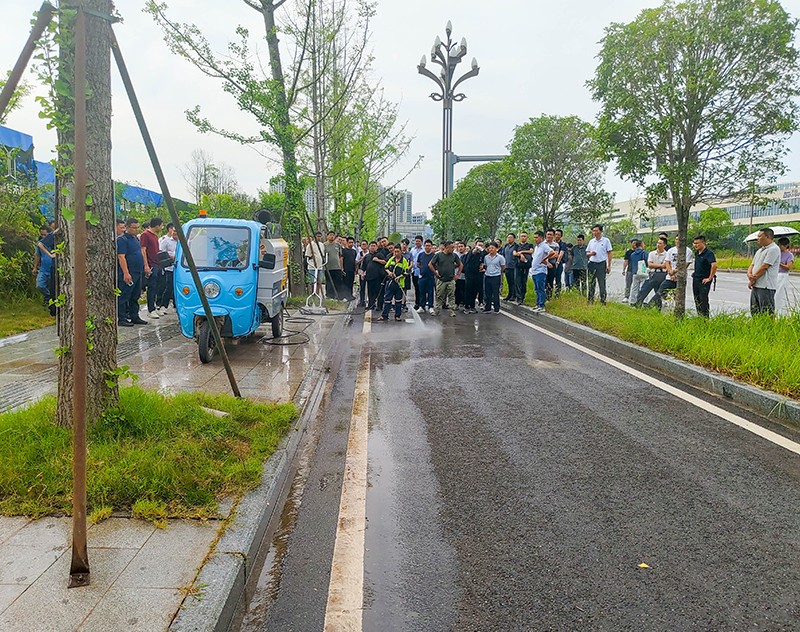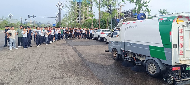 操作人員現場演示車輛組合作業以及清掃效果,精彩的演示讓現場人員都受益匪淺。通過這次現場觀摩,全體人員對公司產品在實際環衛作業中的卓越性能與高效表現有了更為直觀且深刻的認識,也更加堅定了大家推廣公司產品、為公司發展貢獻力量的決心。