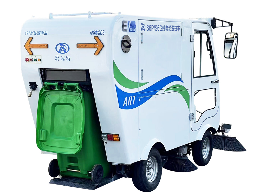 瑞清S6P/S6G電動清掃車小巧靈活、通過性強,主要用于非機動車道、輔道、人行道、背街小巷等路面的清掃作業,采用純吸方式,集清掃、噴淋、高壓沖洗、手持吸取為一體,可快速清掃落葉、石子、沙塵、白色垃圾等,配置240L標準垃圾桶。